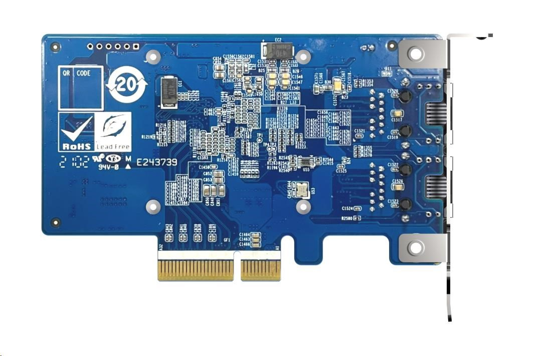 QXG-10G2T-X710 se dvěma porty je síťová rozšiřující karta 10GbE PCIe Gen 3 (kompatibilní s PCIe Gen 2) s řadičem Intel Ethernet X710 a podporuje až pět rychlostí (10G / 5G / 2,5G / 1G / 100M). Pomocí funkce Slučování portů lze oba porty kombinovat a dosáhnout tak rychlosti přenosu až 20 Gb/s pro zrychlení sdílení souborů a intenzivní přenos dat. Díky podpoře SR-IOV a iSCSI zařízení QXG-10G2T-X710 výrazně zvyšuje efektivitu sítě a je ideální pro virtualizační aplikace a datová centra náročná z hlediska I/O a latence.