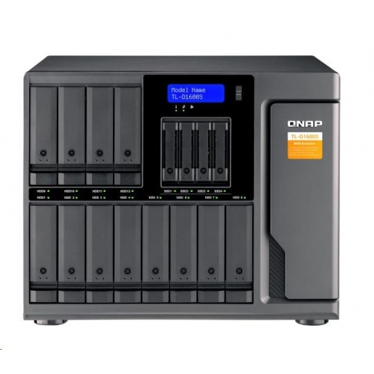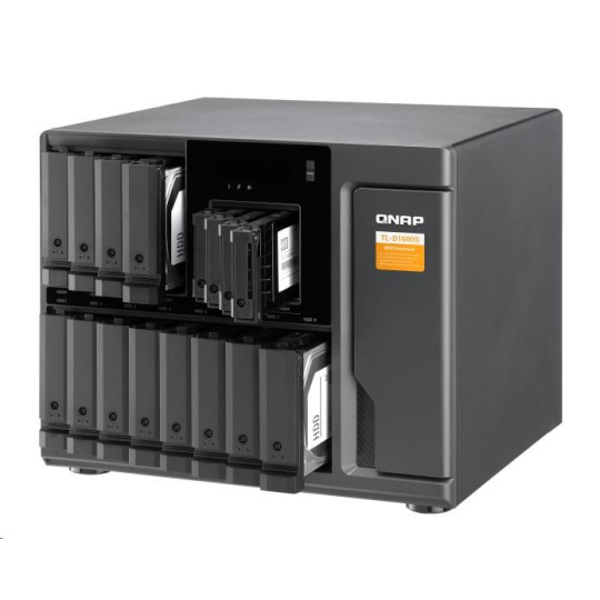 TL-D1600S je vybaven dvanácti 3,5“/2,5“ SATA 6Gb/s diskovými sloty a čtyřmi 2,5“ SATA 6Gb/s SSD sloty, navíc obsahuje i kartu QXP PCIe pro připojení expanzní jednotky pomocí kabelu SFF-8088 (nebo SFF-8644). Poskytuje spolehlivý výkon při čtení a zápisu pro snadné ukládání a zálohování dat.