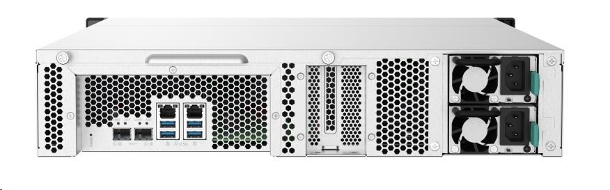 NAS s čtyřjádrovým 1,7GHz procesorem, montáží do racku, porty 10GbE SFP+ a 2,5GbE, a redundantním napájecím zdrojem pro IT prostředí malých a středních podniků