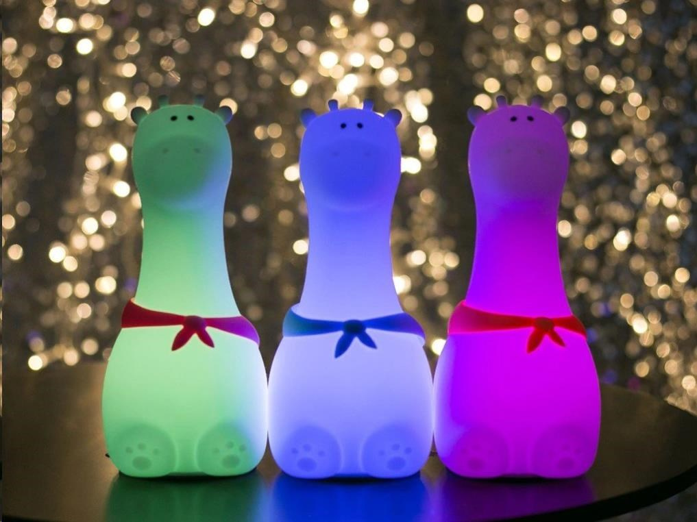 Dětská lampička v podobě roztomilé žirafy s barevnými šátky, vyrobená z měkkého, certifikovaného a zdravotně nezávadného silikonu, je ideální první lampičkou pro děti. Měkká lampička se stane věrným zvířecím kamarádek, který pomůže vašemu dítku s usínáním, doprovodí ho v noci na záchod a s nadšením s ním vyrazí za každým dobrodružstvím. Zapnout, vypnout lampičku, změnit barvu světla, je zcela jednoduché, stačí na lampičku poklepat.