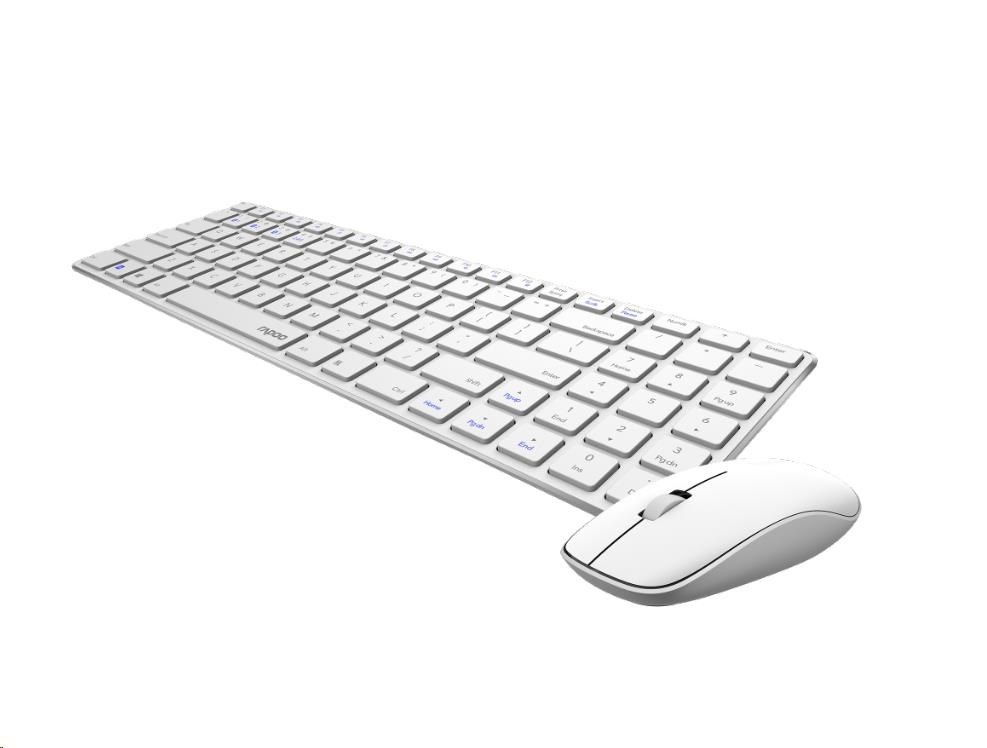 RAPOO set klávesnice a myš 9300M, bezdrátová, Multi-Mode Slim Mouse, Ultra-Slim Keyboard, bílá