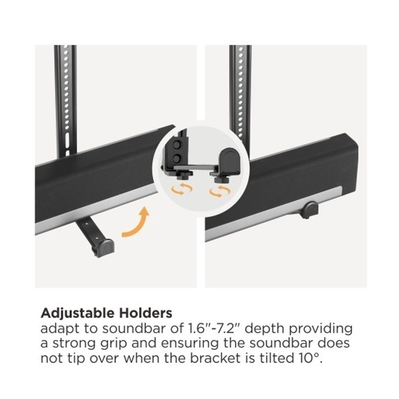Držáky na reproduktor pod nebo nad TV - prodlužují jeho držák, 2ks - výsuvné 4-18,2cm, rozměry zvukového zařízení může být 40x182mm s šířkou 508-1143mm, maximální zatížení 15 kg, kombinace oceli a plastu, barva černá..