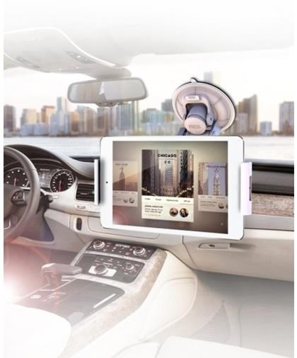 Držák pro tablety 7-11" v horizontální i vertikální poloze do auta na přední sklo. Přísavný adapter na sklo s kulovou hlavou pro volné nastavení, otočný o 360°, fixace ze dvou stran, plastové provedení, bílý..
