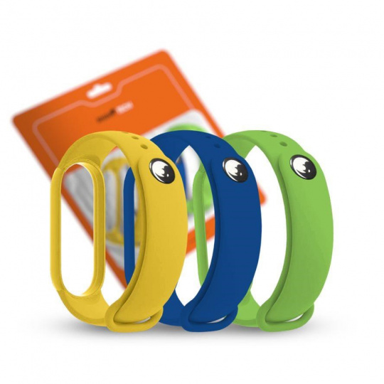 RhinoTech řemínek pro Xiaomi Mi Band 7, (3-pack), tmavě modrá / žlutá / zelená
