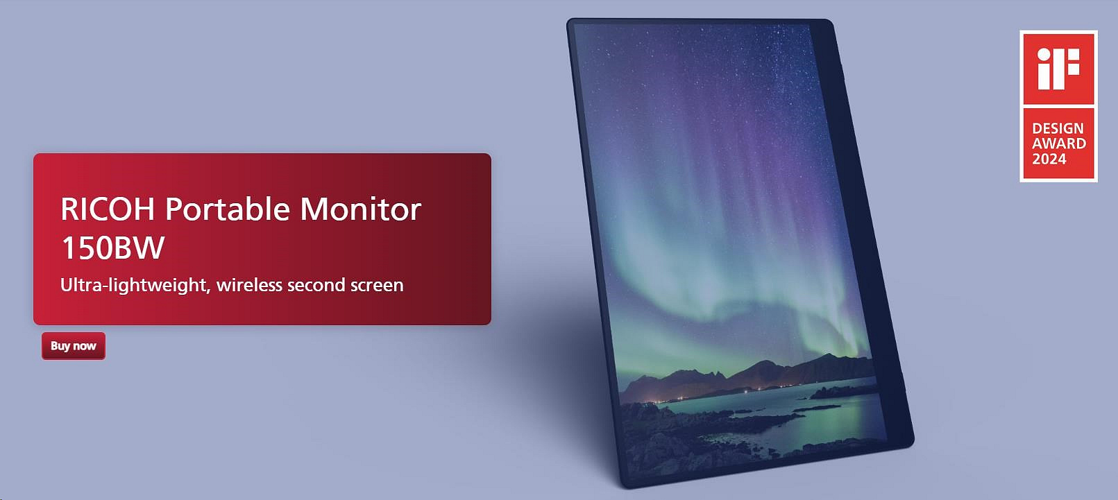 RICOH Portable LCD 150BW 15.6" 16:9 1920x1080 OLED 1ms 100,000:1 Wireless/Miracast USB-C/Li-Ion Battery Powered