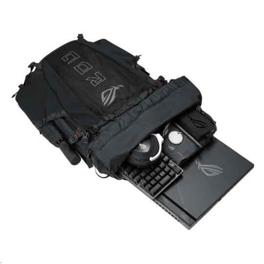 • Praktický nastavitelný rolovací design: Herní batoh ROG Archer Ergo s nastavitelnou rolovatelnou svrchní částí o objemu 40 litrů a prostorem pro 18palcový notebook zajišťuje bezpečné uložení veškerého vybavení bez ohledu na to, kolik toho nesete.