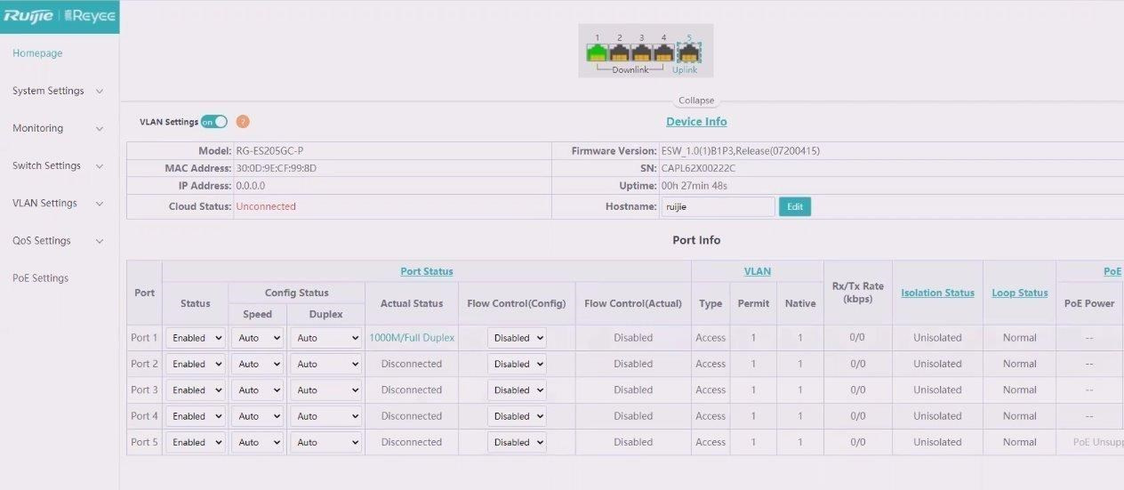 Reyee RG-ES218GC-P Smart mananged PoE switch, 16x PoE, 2x SFP