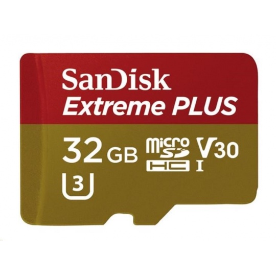 SanDisk MicroSDHC karta 32GB Extreme PLUS (10MB/s, UHS-I V30, Rescue Pro Deluxe) + adaptér
