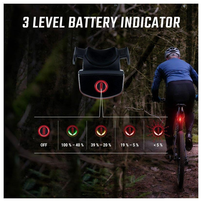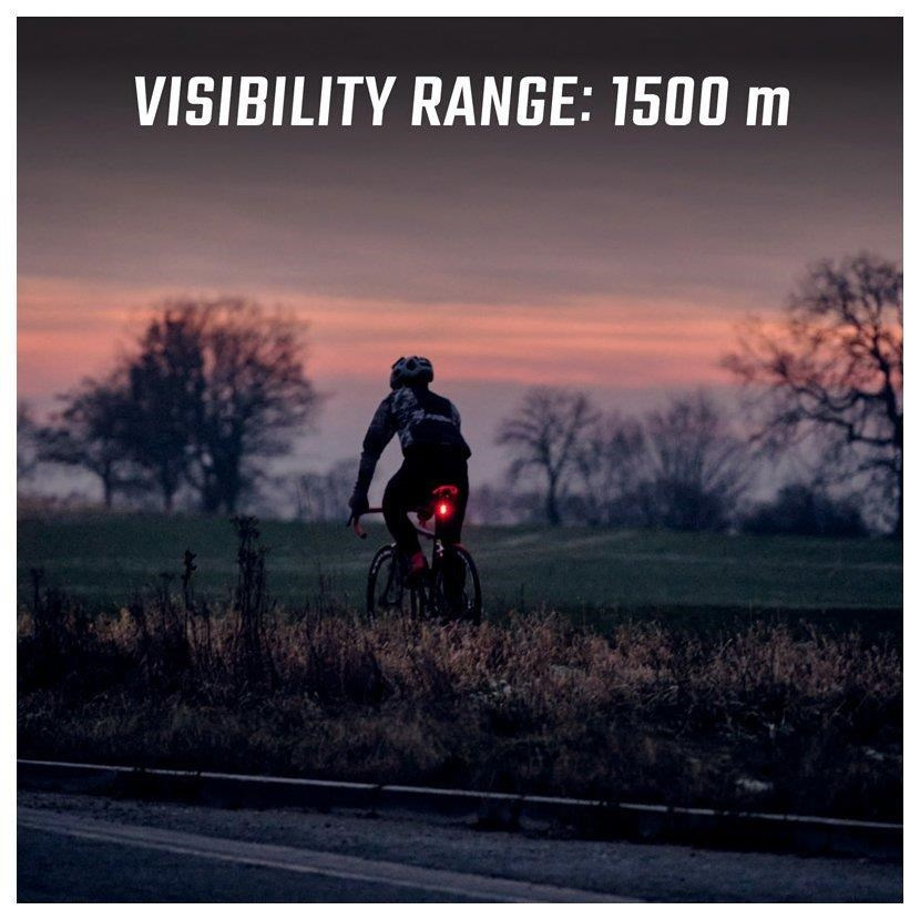Světlo se zapíná dvojitým stisknutím. Velké tlačítko zapnutí lze snadno ovládat i v rukavicích. Tato funkce zajistí, že zadní světlo lze bez problémů schovat do kapsy dresu nebo do batohu, aniž by se nedopatřením rozsvítilo.