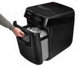 Skartování nikdy nebylo snazší. Revoluční novinka značky Fellowes, Vás o tom přesvědčí. Jen nalož, zapni a běž. Tento automatický skartovací stroj Vám umožní věnovat se prospěšnějším kancelářským činnostem, nežli je opakované postávání u běžného skartovače. Zařízení je schopno na jeden pracovní cyklus při automatickém podávání skartovat až 200 listů 70g papíru v křížovém řezu 4×38 mm. Skartovač je vybaven vstupní štěrbinou pro ruční podání až 10-ti listů papíru. Výkonný řezací mechanismus zpracuje při automatickém podávání sešívačkou sešité papíry (až 20 sponkou sešitých listů 70g papíru). Při manuálním podávání i kreditní karty, CD/DVD.