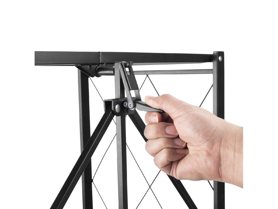 Regál Fiber Mounts M8C97 Praktický úložný regál s 3x velkými policemi nabízí dostatek prostoru jak pro drobnosti jako jsou knihy, dokumenty, hračky, tak i pro velká zařízení jako jsou mikrovlnky, tiskárny a nářadí. Rám je vyroben z kvalitního kovu, díky kterému je regál stabilní a má vysokou nosnost. Boční mřížky zabraňují pádu předmětů. Skládací: Stojan lze snadno složit a ve složeném stavu zabírá málo místa. Nevyžaduje montáž - police je již smontovaná, takže ji můžete používat ihned po vybalení. Všestranná police: Díky univerzálnímu designu lze polici umístit kamkoli je potřeba. Hodí se jak do koupelny, tak do kanceláře nebo dílny. Možnosti využití jsou nepřeberné. Snadná přeprava: 4x kolečka umožňují pohodlný přesun mezi místnostmi. Integrovaná brzda zajišťuje vyšší bezpečnost. Technické údaje: - Nosnost 40kg - Použití: Univerzální police - Funkce skládání - Boční rošty - Stabilní konstrukce rámu - Rozměry: 710 mm x 380 mm x 860 mm - Materiál: Kov - Počet polic: 3 - Počet koleček: 4 - Barva: Černá.