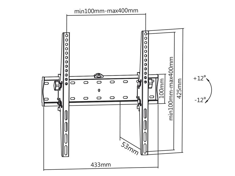 Kvalitní nástěnný držák pro zavěšení Tv 32-60" a naklopení +/-12°, VESA standardy 75x75 až 400x400, vzdálenost od zdi 53mm, nosnost 40kg.... více
