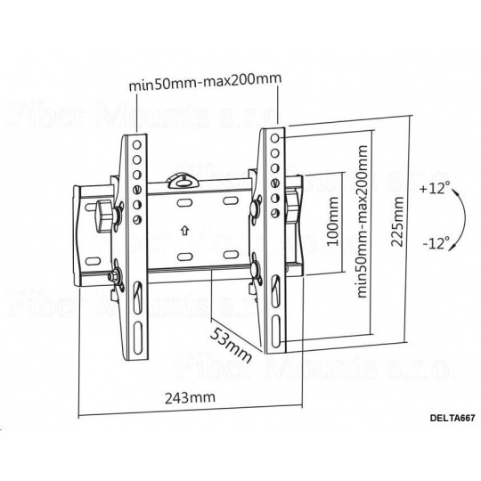 Sklopný držák Tv Fiber Mounts DELTA667 Kvalitní naklopitelný držák na televizory s úhlopříčkou 23" až 42" Televizní držák s náklonem velmi pevné a odolné konstrukce. Snadné naklonění obrazovky do požadovaného úhlu a zajištění v pozici. Pojistka proti vysazení obrazovky z držáku. Výborná kvalita za skvělou cenu. Tv držák sklopný, odsazení 53mm, náklon +12° až -12°, VESA standard 75x75 až 200x200, nosnost 30kg - Fiber Mounts DELTA667 Technické údaje: nosnost 30kg podpora VESA standardu 75x75 až 200x200 doporučujeme na televizory a monitory s úhlopříčkou 23" až 42" vzdálenost od zdi 53mm náklon +12° až -12° zajištění náklonu v požadovaném úhlu pojistka proti vysazení Tv velmi pevná a odolná konstrukce integrovaná vodováha snadná a rychlá montáž součástí balení montážní materiál barva černá záruka 5 let Držák DELTA667 podporuje VESA standardy: VESA 50x50 VESA 75x75 VESA 100x100 VESA 200x100 a 100x200 VESA 200x200.