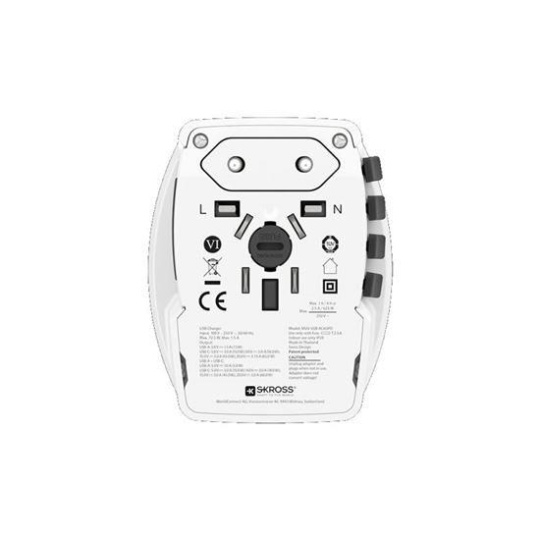SKROSS MUV USB AC65PD umožňuje bezpečné připojení elektronických zařízení ve více než 220 destinacích po celém světě. Díky integrované rychlonabíječce s porty USB-C a USB-A můžete současně napájet notebook, telefon, tablet, powerbanku nebo jiná zařízení. Navíc nemusíte pořizovat USB-C kabel, je přibalen k adaptéru.