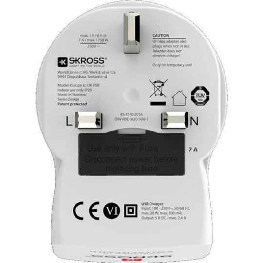 SKROSS cestovní adaptér UK USB pro použití ve Velké Británii, typ G
