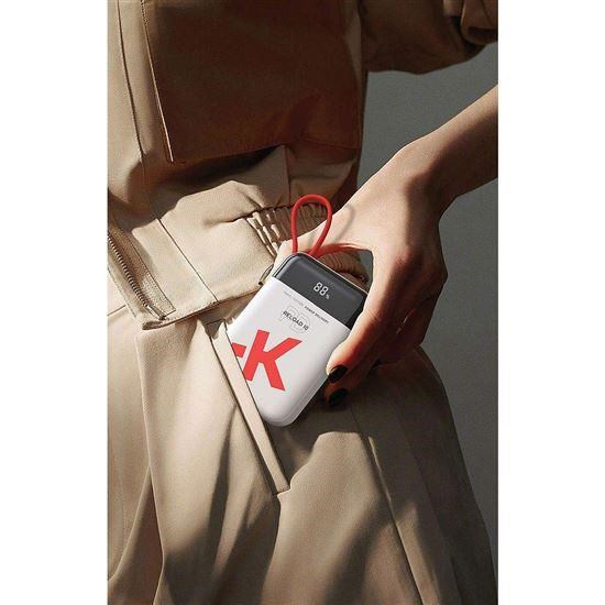 Powerbanka má ergonomický tvar a nízkou hmotnost, to z ní dělá ideálního společníka na cesty. Integrovaný USB-C kabel, který zároveň slouží jako praktické poutko na přenášení, usnadňuje každodenní používání. Díky displeji máte vždy přehled o dostupné energii a stavu nabíjení či dobíjení.