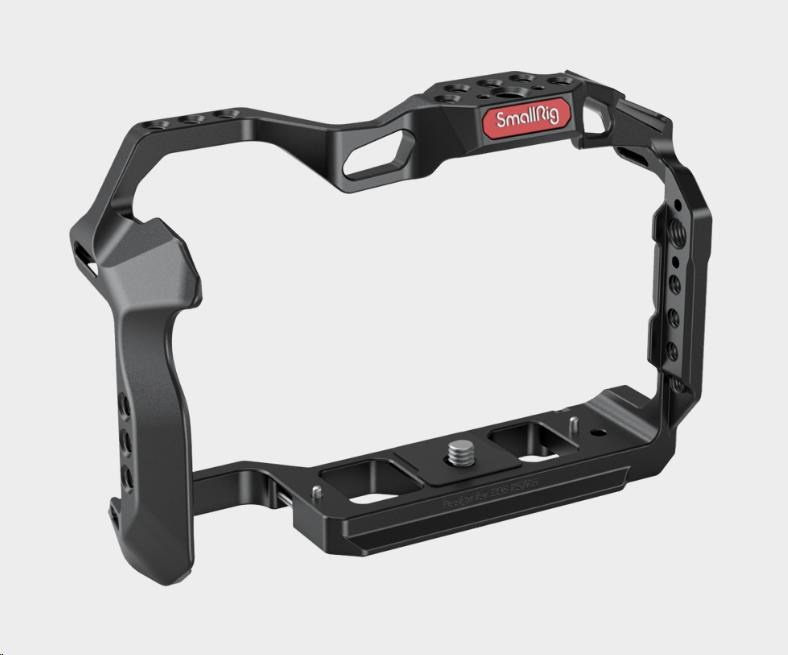 Klec SmallRig 2982 se připevňuje k fotoaparátu pomocí jednoho šroubu 1/4"-20 a dvou polohovacích kolíků se silikonovými polštářky na horní a spodní straně, aby se zabránilo poškrábání.