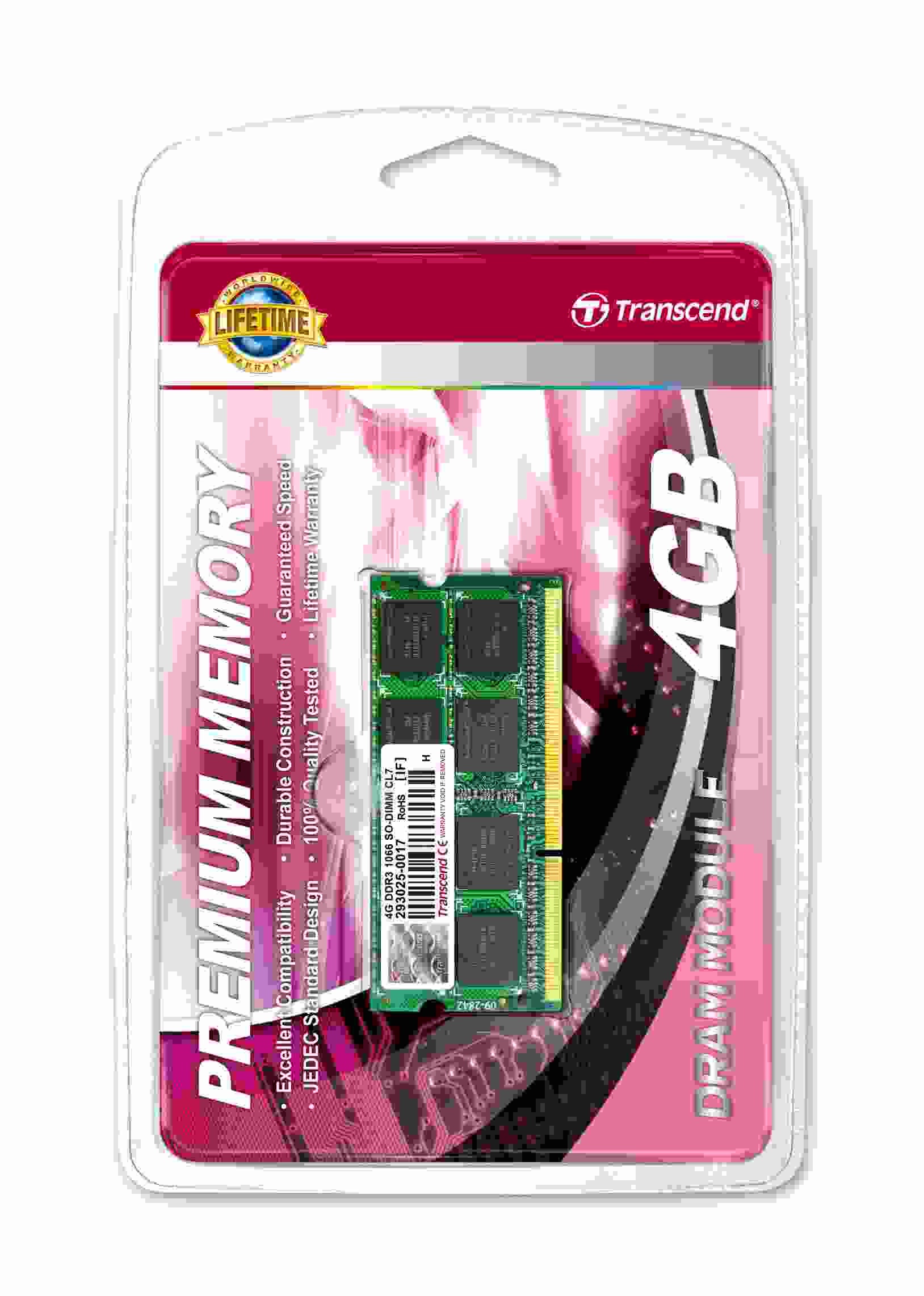 TRANSCEND SODIMM DDR3 4GB 1066MHz 2Rx8 CL7 JetRam™ Retail