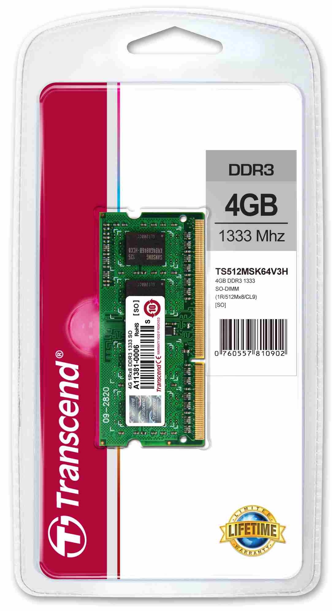 TRANSCEND SODIMM DDR3 4GB 1333MHz 1Rx8 CL9