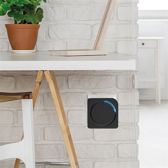 Černé provedení s čistými liniemi působí nenápadně a elegantně zároveň. Zvonek decentně ladí s většinou interiérů a neruší celkový vzhled místnosti. Kombinuje moderní design s praktickým využitím v každodenním provozu.