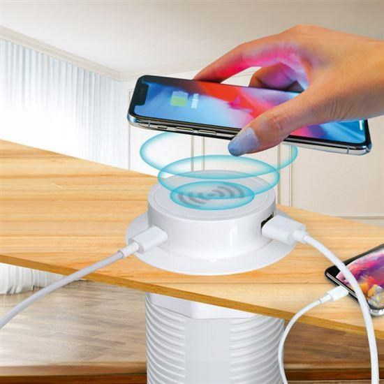 Výsuvné USB zásuvky s rychlým nabíjením, bezdrátová nabíjecí podložka ve vrchním krytu, wireless Qi 15W, AC/DC adaptér DC 12.0V / 2.0A, 24W, přívodní kabel 1.5m.... více
