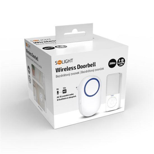 Solight bezdrátový zvonek, do zásuvky, 200m, bílý, learning code