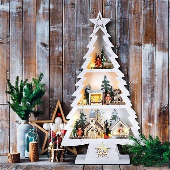 Dřevěný váčnoční stromekek s dekoracemi a LED osvětlením