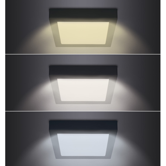 Solight LED mini panel CCT, přisazený, 18W, 1530lm, 3000K, 4000K, 6000K, čtvercový, černá barva