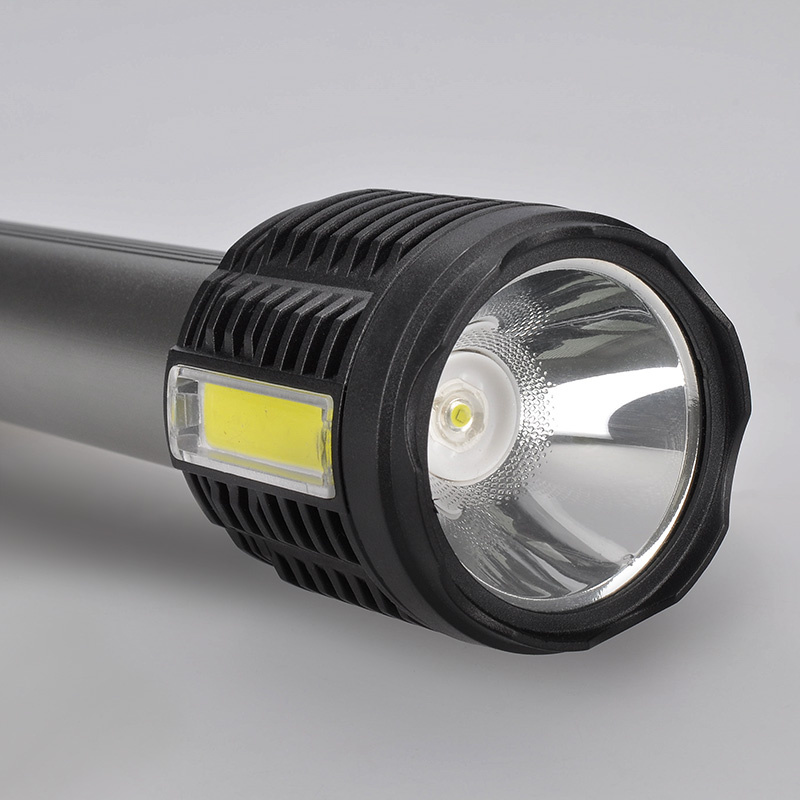 - ruční LED svítilna s hlavním a bočním zdrojem světla