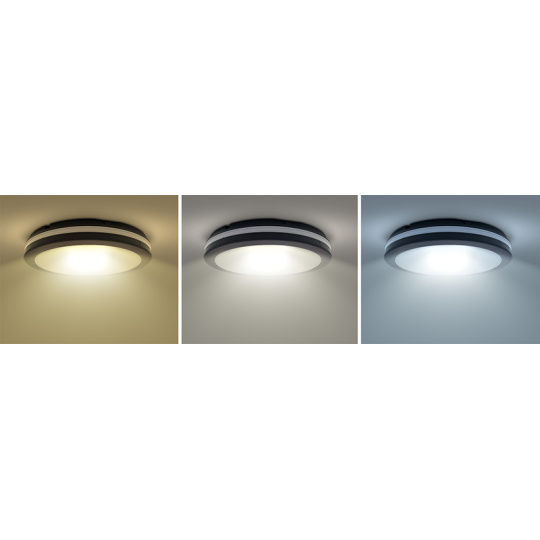 - disponuje speciálním přepínačem, který umožňuje nastavení teploty světla (chromatičnosti) od teplé, přes neutrální až po studenou bílou (3000K, 4000K nebo 6500K). Dalším přepínačem lze nastavit výkon světla na 18W, 22W a 26W.