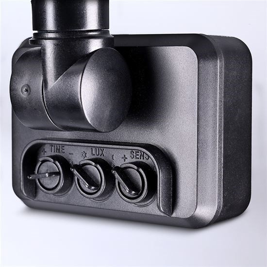 Pohybový senzor detekuje pohyb až do vzdálenosti 10 metrů a umožňuje nastavení délky svícení v rozsahu 5 sekund až 10 minut. Součástí je také nastavení světelné citlivosti (3–2000 lux), které zajišťuje aktivaci reflektoru pouze při snížené hladině okolního světla. Robustní hliníkové tělo a krytí IP65 zajišťují odolnost vůči vodě a prachu, což reflektor předurčuje k venkovnímu použití. Instalace je rychlá díky voděodolnému konektoru, úhel svícení činí 120°, životnost LED dosahuje 25 000 hodin. Rozměry 158 × 190 × 30 mm a černý design doplňují jeho profesionální vzhled.
