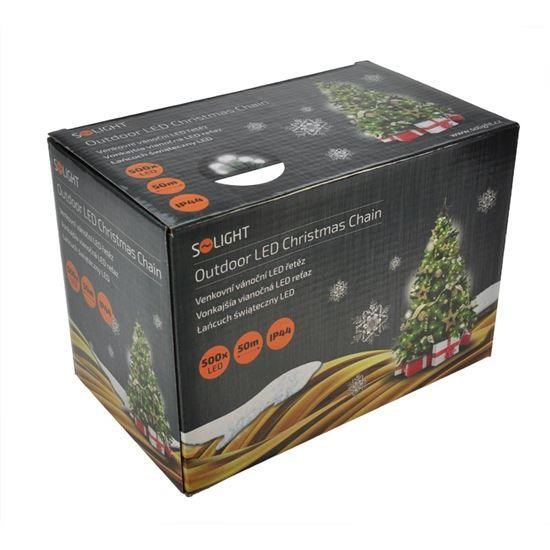 Solight LED vánoční řetěz, 500 LED, 50m, přívod 5m, IP44, bílá