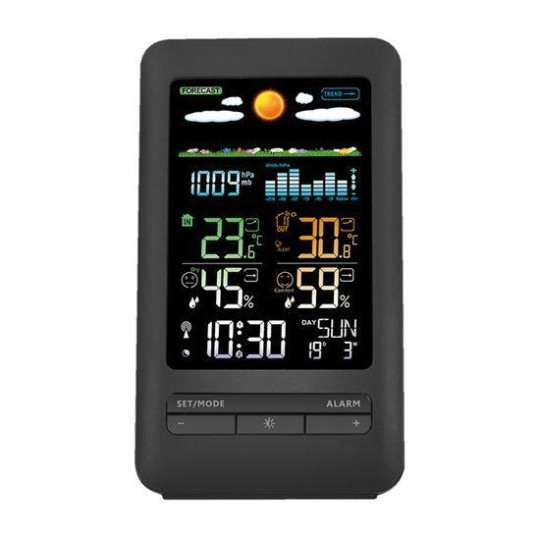 Solight meteostanice, barevný LCD, vnitřní/venkovní teplota a vlhkost, tlak, RCC, černá