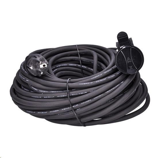 Odolný gumový kabel typu s průřezem vodičů 1,5 mm2 odolává střednímu mechanickému namáhání i zhoršeným klimatickým podmínkám. Můžete se na něj spolehnout všude tam, kde klasický PVC kabel už nestačí. Samozavírací víčko chrání zásuvku před vodou a prachem.