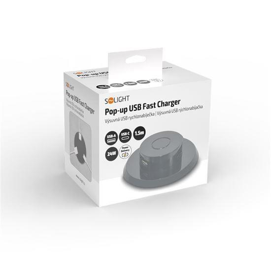 Solight výsuvná nabíječka USB A+C 24W PD, černá