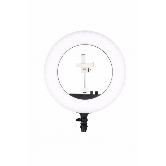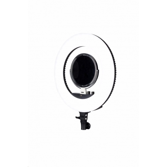 LED kruhové světlo Halo 18 lze napájet dodávaným AC adaptérem. Díky standardnímu 5/8" závitu může být kruhové světlo upevněno na téměř jakýkoli světelný stativ (není součástí dodávky). Tato sada zahrnuje řadu příslušenství včetně držáku na mobilní telefon a oboustranného make-up zrcátka, z nichž jedno z nich lze upevnit přímo do středu kruhového světla.