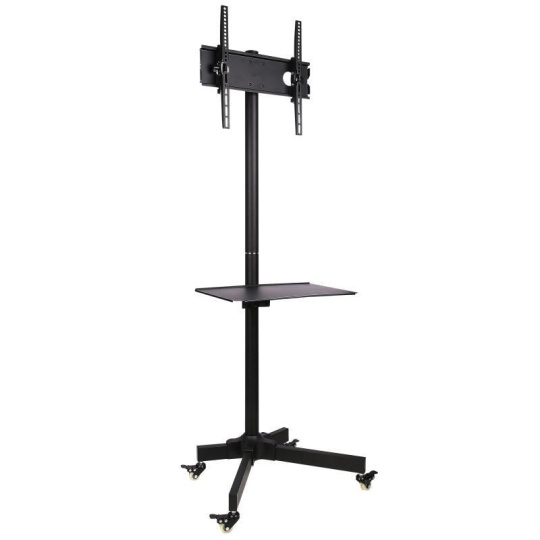 Stojan na televize i monitory 23-55", VESA 75x75 až 400x400, nastavení výšky 1000-1484mm, naklápění +/-15°, polička 485x293mm, kolečka s aretací, vedení kabelů, nosnost 25kg.... více