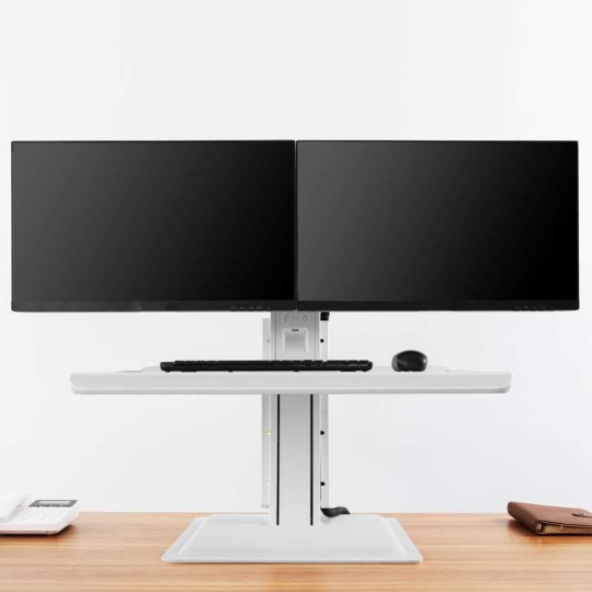 Stolní pracovní stanice pro 2 monitory Fiber Mounts ST15-2AW Profesionální pracovní stanice na 2 monitory 19-27" pro práci vsedě nebo vestoje Pracujte kdykoliv vsedě nebo vestoje - zlepšete své pracovní pohodlí a udělejte něco pro své zdraví. Profesionální pracovní stanice na 2 monitory ST15-2AW umožňuje díky pokročilému systému velmi snadné a rychlé nastavení výšky monitorů do potřebné pozice pro práci vsedě nebo vestoje. Luxusní bílé provedení podtrhuje naprosto vynikající kvalitu. Záruka 5 let. Profesionální kancelářská stolní pracovní stanice na 2 monitory pro práci vsedě nebo vestoje Fiber Mounts ST15-2AWKancelářská stolní pracovní stanice výškově polohovatelná pro práci vsedě nebo vestoje Fiber Mounts ST15-2AW Technické údaje: celková maximální hmotnost monitorů 11kg na monitory s úhlopříčkou 19-27" podporuje VESA standardy 75x75 a 100x100 nastavení výšky monitorů od police na klávesnici a myš 0-110mm změna výšky pro práci vsedě nebo vestoje 0-450mm vyšší produktivita práce, zdravější styl práce unikátní pokročilý systém pro velmi snadné a rychlé výškové polohování možnost nastavení náklonu monitorů +15° až -3° polička na klávesnici a myš, rozměry 690x495mm esteticky ukrytý USB port funkce pivot (rotace monitorů o 360°) nádherný dizajn v bílém provedení nejvyšší kvalita, bezpečnost a stabilita na pracovním stole stačí volné místo s rozměry 450x480mm záruka 5 let Stolní pracovní stanice pro 2 monitory do kanceláře nebo pracovny pro snadnou a rychlou změnu práce vsedě nebo vestoje Fiber Mounts ST15-2AW Pracovní stanice pro 2 monitory ST15-2AW podporuje VESA standardy: VESA 75x75 VESA 100x100 Pracovní stanice na 2 monitory pro práci vsedě nebo vestoje Fiber Mounts ST15-2AWPracovní stanice na 2 monitory pro práci vsedě nebo vestoje Fiber Mounts ST15-2AW Pracovní stanice na 2 monitory pro práci vsedě nebo vestoje Fiber Mounts ST15-2AWPracovní stanice na 2 monitory pro práci vsedě nebo vestoje Fiber Mounts ST15-2AW Profesionální stolní pracovní stanice pro pohodlnou práci vsedě nebo vestoje, rychlá a snadná změna požadované výšky. Snižuje bolest zad a zvyšuje pracovní výkon a pohodlí. Krásný dizajn, který si získá nejen Vás, ale úplně každého..