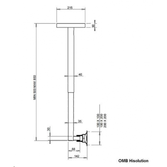 Držák pro zavěšení Tv a monitorů s úhlopříčkou 17-42" na strop, délkové nastavení Cenově dostupný stropní držák Tv nebo monitoru, který je výborného zpracování a kvality. Držák Vám umožní plnohodnotné nastavení pozice obrazovky: otáčení do stran, náklon nebo výškové polohování. Díky krytce je možné i ukotvení za sádrokartonový strop - průchod zakryjete. Kabeláž je možné vést vnitřkem držáku. Na výběr máte ze dvou barevných variant: černý nebo stříbrný. Držák podporuje VESA standardy 75x75 až 200x200, možné je za příplatek rozšíření VESA až na 400x400. Držák je vhodný na všechny typy televizorů i monitorů s hmotností do 20kg, doporučená úhlopříčka je 17-42", s rozšířeným VESA standardem až na 52". OMB Hisolution - stropní držák televize monitoru - originál od OMB Technické údaje: nosnost 20kg na televizory a monitory 17" až 42" sklopný nahoru i dole +20° / -20° otočný do stran +95° / -95° nastavitelná délka ramene 50-85cm vysoká kvalita zpracování možnost vedení kabeláže vnitřkem držáku krytka stropního uchycení barva černá nebo stříbrná záruka 2 roky Stropní držák na televizory a monitory OMB Hisolution černý Stropní držák Tv nebo monitoru OMB Hisolution podporuje VESA standardy: VESA 50x50 VESA 75x75 VESA 100x100 VESA 200x100 VESA 200x200 Při zakoupení rozšíření VESA standardu bude držák podporovat i VESA standardy: VESA 300x200 VESA 300x300 VESA 400x200 VESA 400x300 VESA 400x400 Držák je vhodný na všechny typy televizorů i monitorů, které mají hmotnost do 20kg a které podporují některý z výše uvedených VESA standardů v rozmezí 50x50 až 200x200, při zakoupení rozšíření podporují VESA až 400x400..