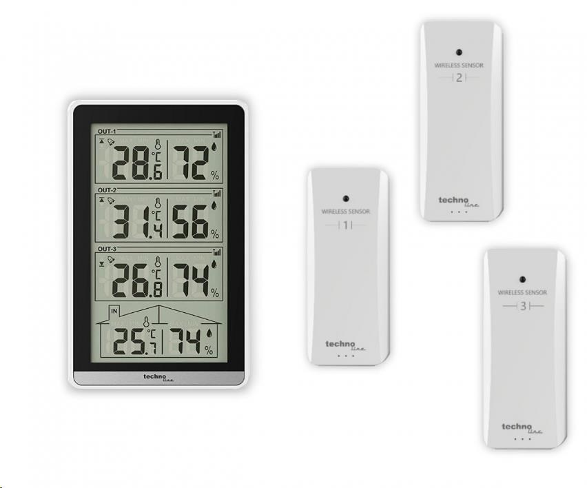 TechnoLine WS 7060 - digitální teploměr s vlhkoměrem se třemi bezdrátovými čidly