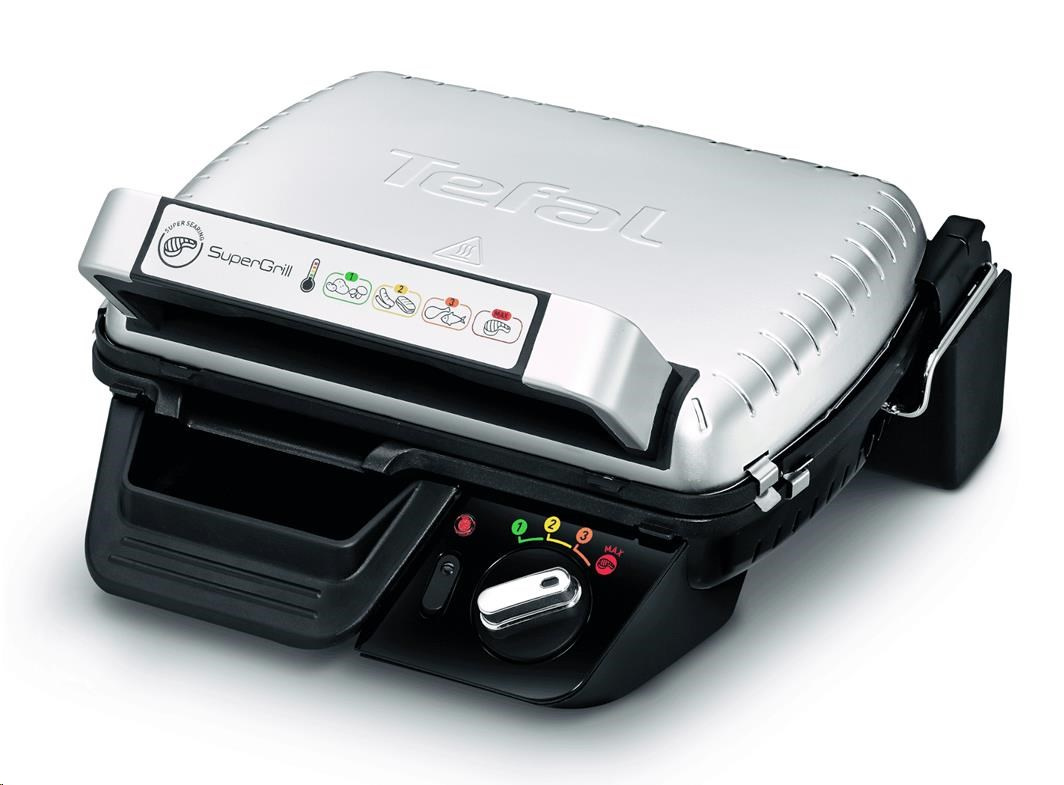 Tefal Supergrill Standard GC450B32 elektrický gril, 2000 W, kontaktní, digitální časovač, odnímatelný tác na šťávu