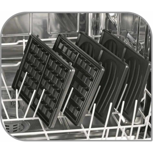 Desky z Tefal Snack Collection 4v1 SW854D16 mají nepřilnavý povrch a navíc je můžete dát do myčky. Jejich čištění vás nebude trápit. Už nikdy více nepohodlné čištění, jako u toustovače s pevnými deskami.