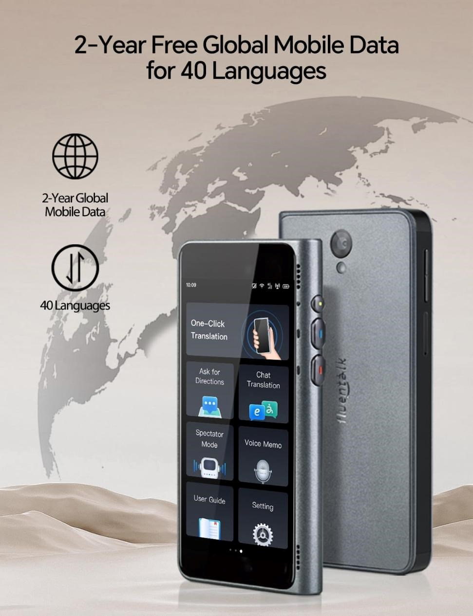 - Objevujte svět bez datových starostí. Dvouletý bezplatný datový tarif eliminuje potřebu Wi-Fi a zajišťuje nepřerušované online překlady kdekoli na světě.