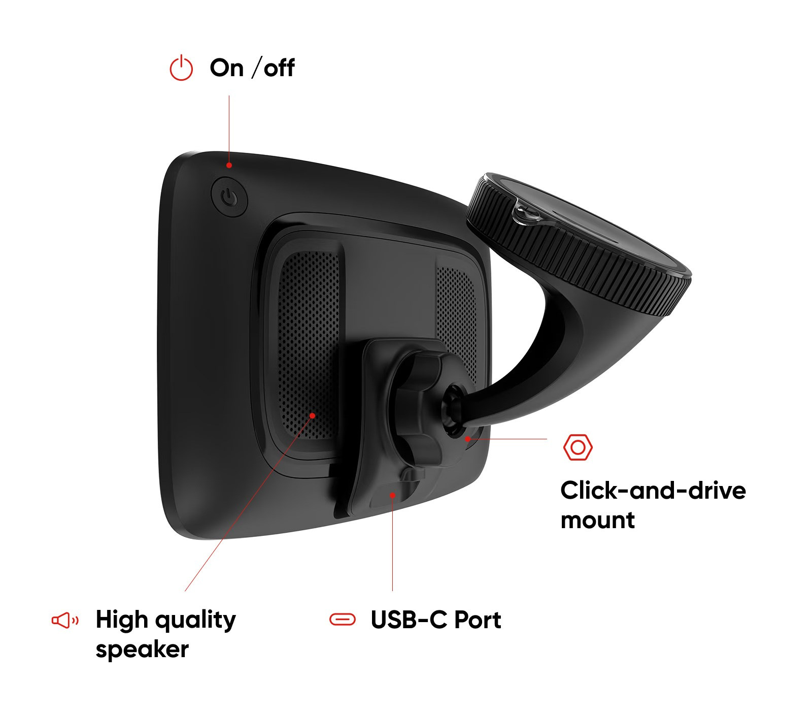 - Aktivní magnetický držák Click-and-Drive je součástí balení