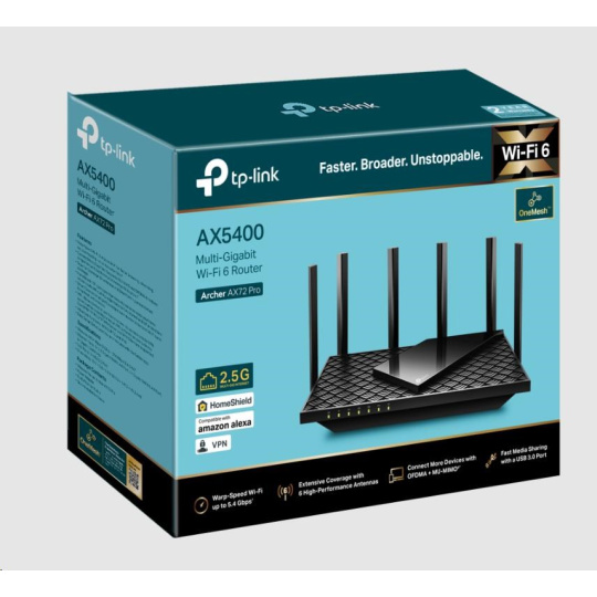 TP-Link Archer AX72 Pro OneMesh/EasyMesh WiFi6 router (AX5400,2,4GHz/5GHz,4xGbELAN,1x2,5GbELAN/WAN,1xUSB3.0)
