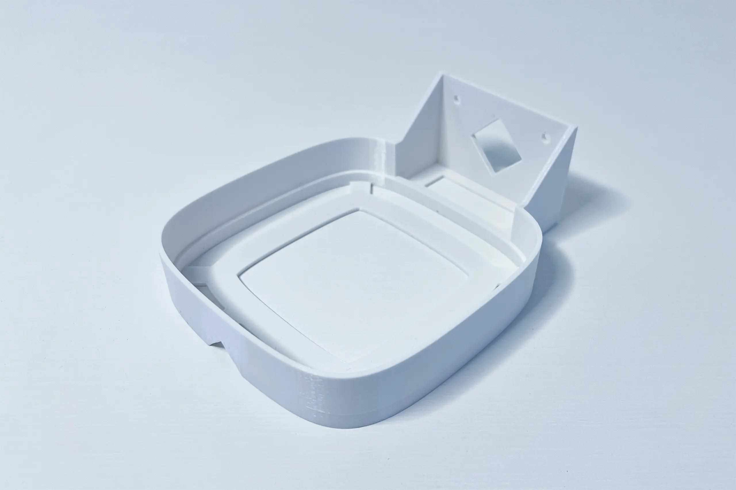 Plastový držák na stěnu pro TP-Link DHX510, HX520 na stěnu a to pomocí dvou šroubů. Držák je vyroben z PETG materiálu na 3D tiskárně a má bílou barvu.