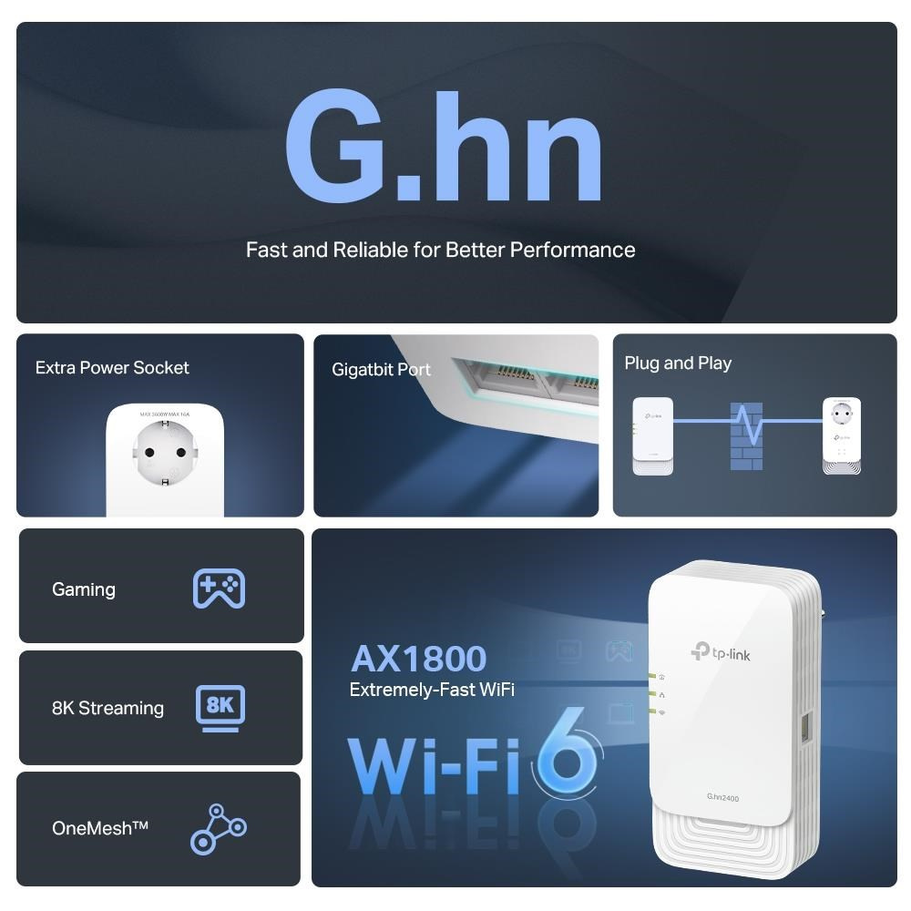 Sada powerline adaptéru a zásuvky G.hn2400 s Wi-Fi 6 AX1800