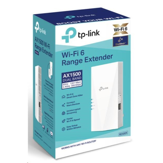 TP-Link RE500X OneMesh/EasyMesh WiFi6 Extender/Repeater (AX1500,2,4GHz/5GHz,1xGbELAN)