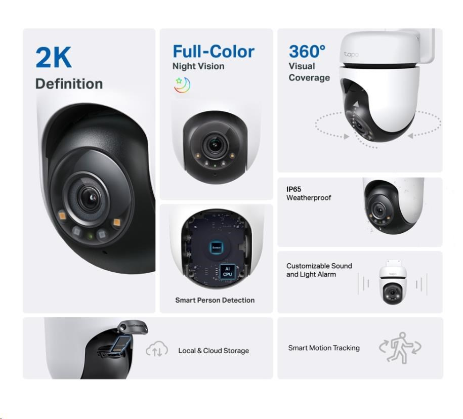 - Lokální a cloudové úložiště: Ukládejte zaznamenaná videa na microSD kartu (až 512 GB)† nebo pomocí cloudových služeb Tapo Care**.