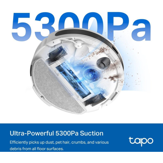 - Mimořádně výkonné sání 5300 Pa: Zajišťuje, že robot účinně sbírá prach, zvířecí chlupy, drobky a různé nečistoty ze všech podlahových ploch a zanechává váš domov bez poskvrnky.